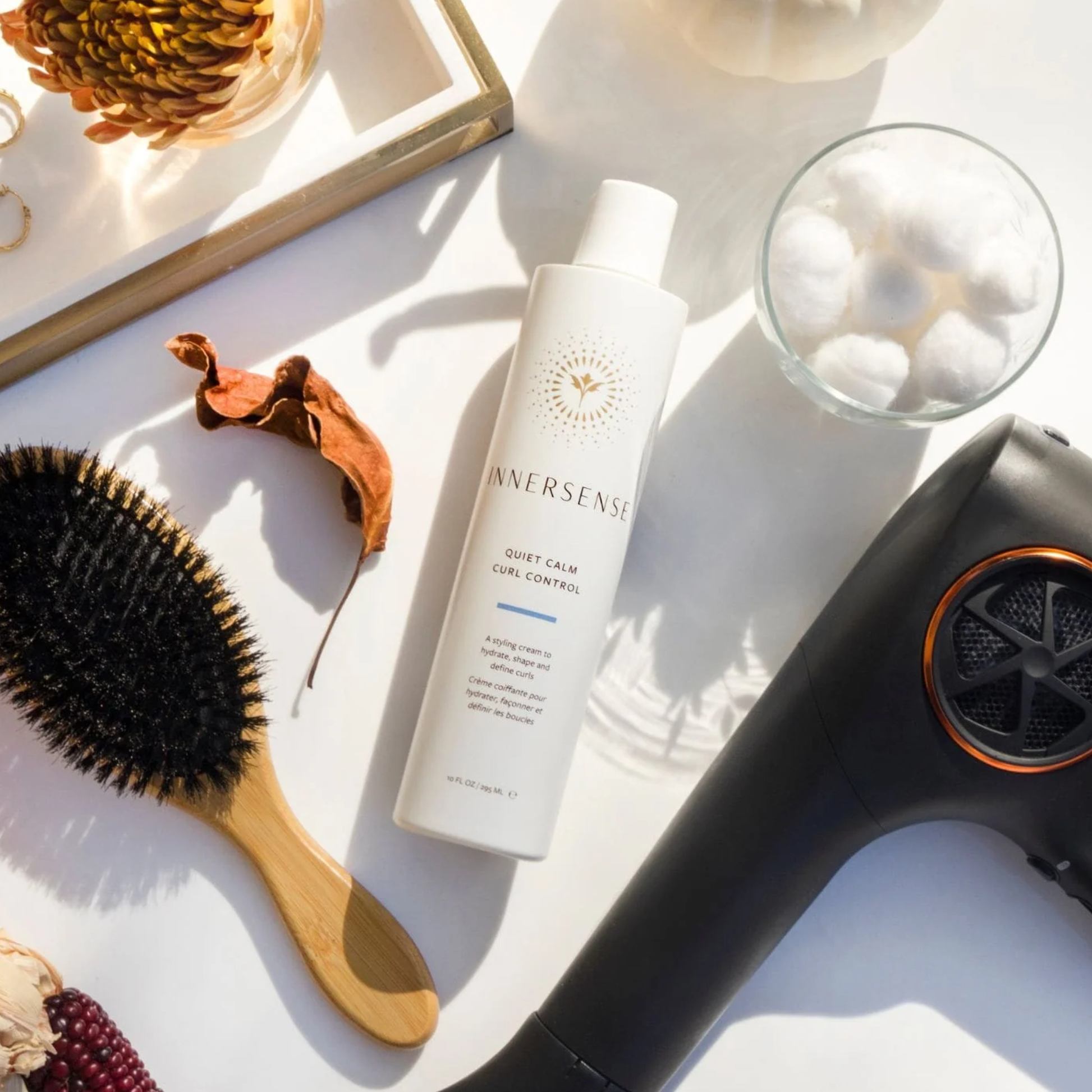 Innersense Quiet Calm Curl Control is een stylingcrème die krullen helpt vormen en definiëren. De crème hydrateert het haar, maakt het glad en voorkomt pluis.