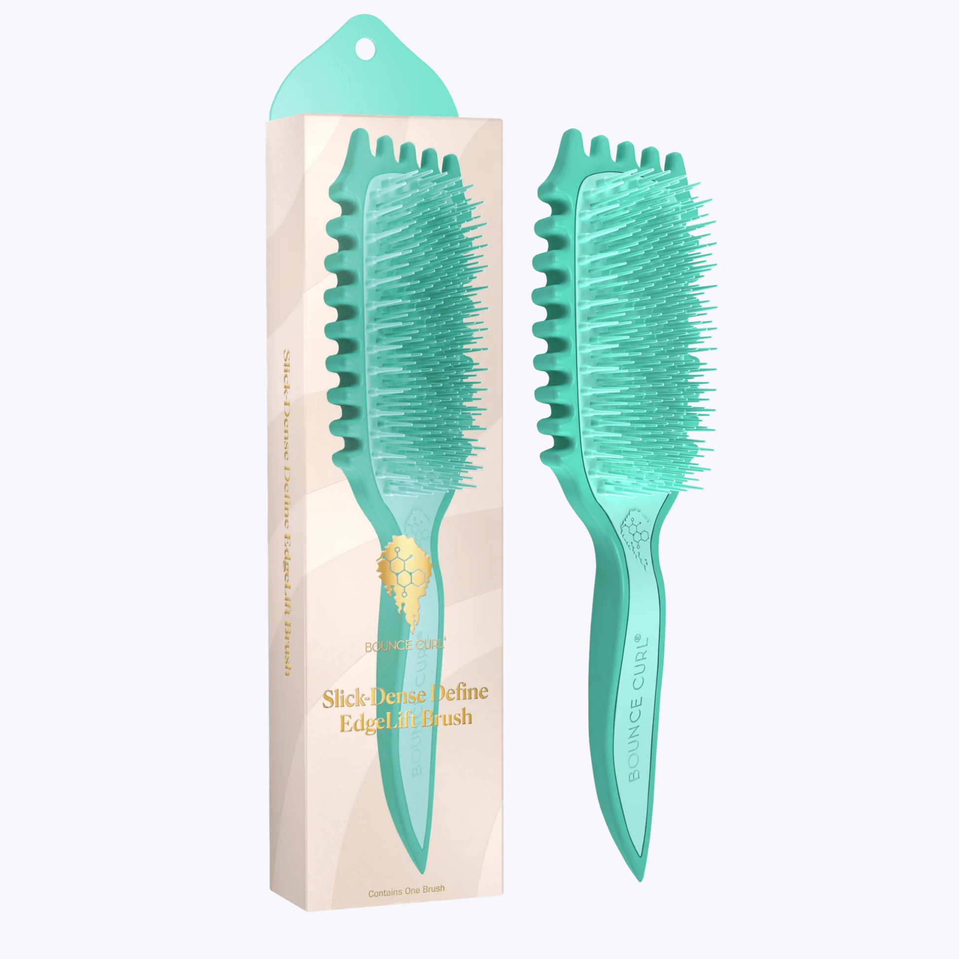 De Bounce Curl Slick-Dense Define EdgeLift is een stylingborstel voor het definiëren van krullen met medium spanning. De dichter op elkaar staande pinnen zorgen voor meer structuur en definitie dan de Flex Define, waardoor hij ideaal is voor haar dat nog wat stevigheid aankan zoals gekleurd, licht beschadigd of kwetsbaar haar.